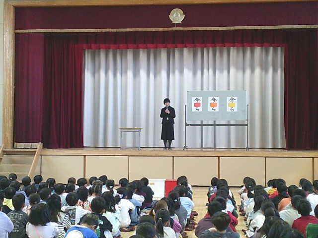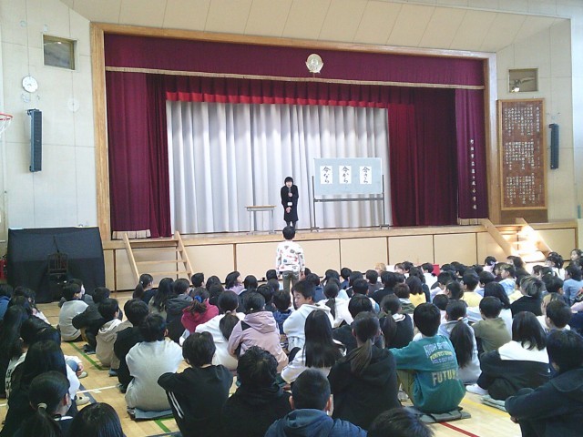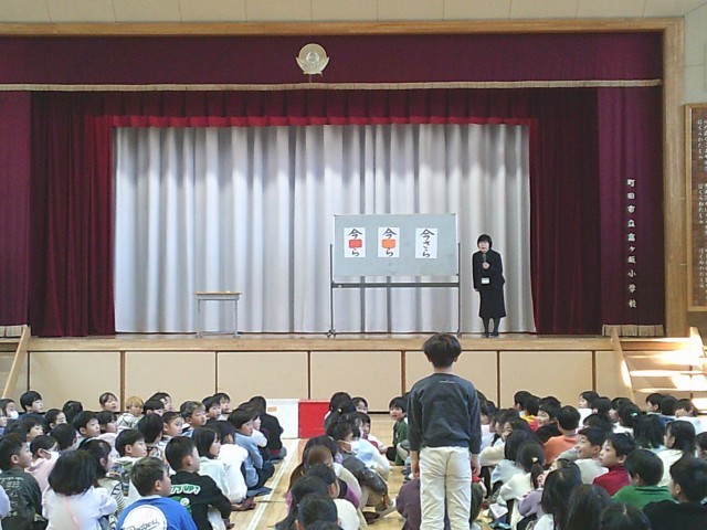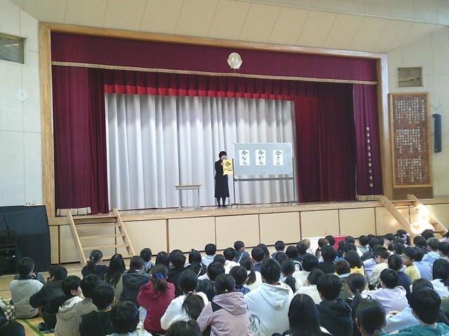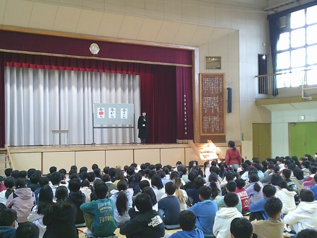 2月に入りました。2日(月)は朝会を行いました。最初に企画委員会の5年生と6年生による挨拶がありました。次は校長先生から「今○ら 今○ら 今○ら」の話がありました。校長先生の質問に対し、手を挙げて答える子どもたちの姿がありました。最後は看護当番の先生から2月の生活目標の話があり、朝会が終わりました。