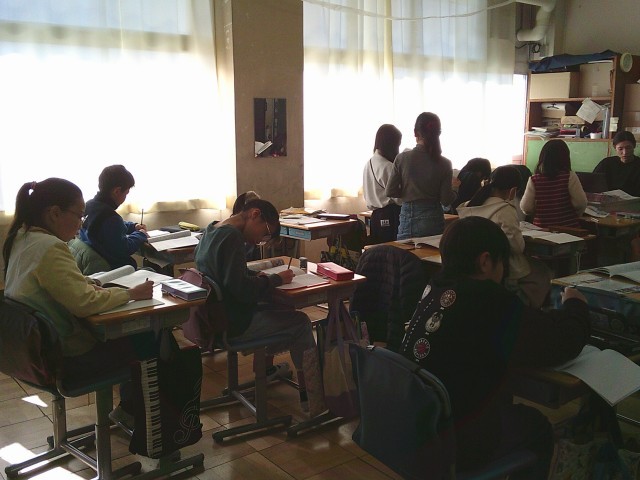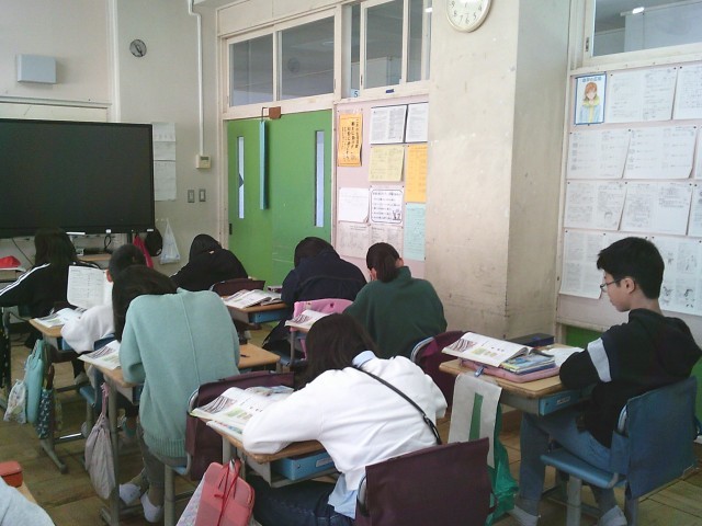 3日(火)2時間目、5年1組は社会の時間でした。「わたしたちの生活と環境」の中から「自然災害を防ぐ」の学習をしています。この学習は1組も2組も「自由進度学習」に初めて取り組んでいます。黒板には学習予定一覧表と子どもたちの名前カードがあります。子どもたちは、教科書や資料集を使って調べ学習をしています。