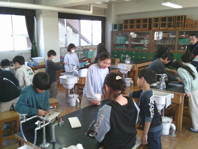 3日(火)3・4時間目、4年2組は理科の時間でした。「水のすがたの変化」の学習です。今回は、水を冷やし続け、水の温度と姿の変化を実験によって調べました。子どもたちは1分ごとに水温を調べながら、その変化を記録しました。