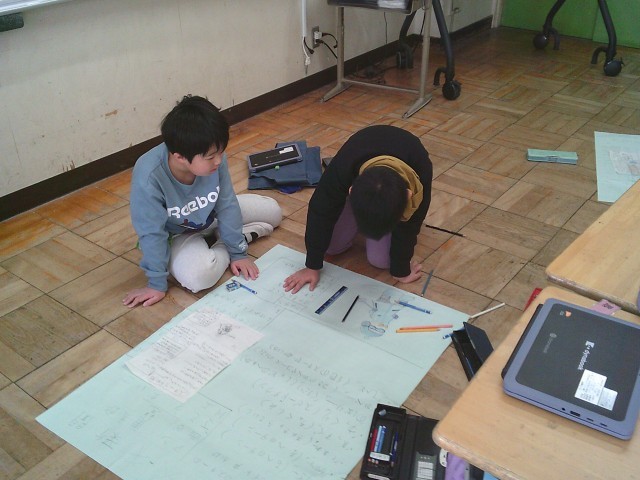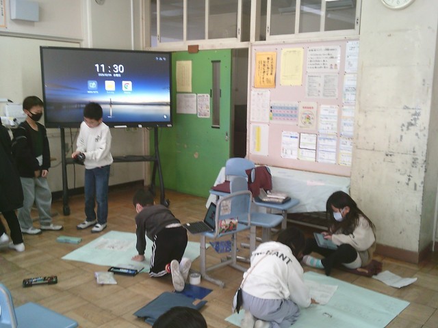 4日(水)4時間目、3年1組は総合的な学習の時間でした。これまで調べてきた「バリアフリー」についてグループごとに模造紙にまとめていました。子どもたちは、分担をしながら取り組んでいました。