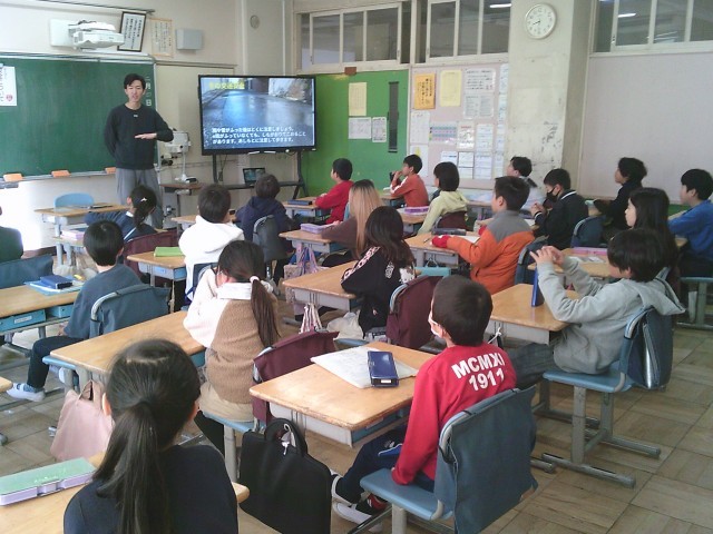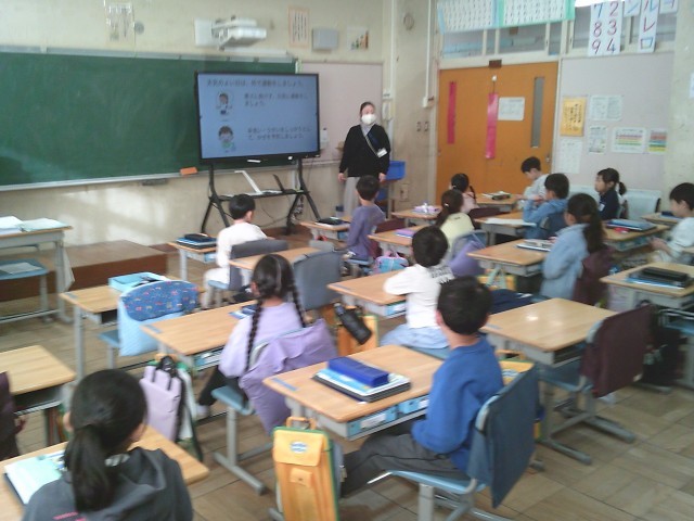毎月第一木曜日の高ヶ坂タイムは全学級で「安全指導」を実施しています。生活指導部が作成したスライドに沿って同じ内容を指導します。今回は、「ポケットに手を入れたまま歩かない」「上校庭は歩く」「凍った道路の歩き方」などを指導しました。ポケットに手を入れたり、袖の中に手を入れたりしながら登校する子が多いため、毎朝正門でも呼びかけています。