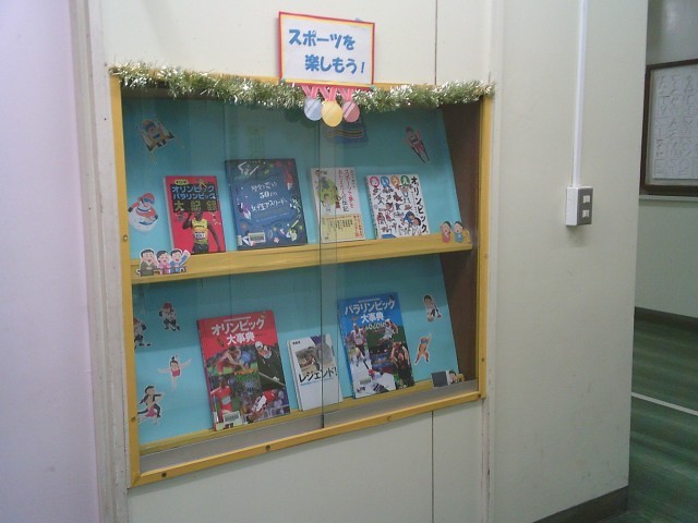 図書準備室前にある本の紹介コーナーが新しくなりました。今月は「スポーツを楽しもう!」がテーマです。子どもたちには、まもなく始まる冬季オリンピック、冬季パラリンピックも楽しみにしてほしいです。