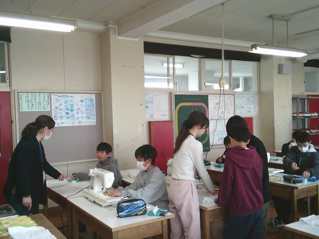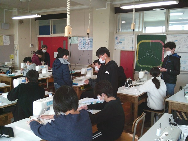 12日(木)1・2時間目、6年2組は家庭科の時間でした。今回はミシンを使って「雑巾作り」をしました。この雑巾は6年生を送る会で在校生に贈るものです。ミシンボランティアとして保護者の皆さまにお手伝いをいただきました。ご多用のところ、子どもたちのためにありがとうございました。