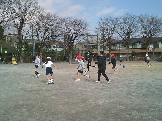 12日(木)4時間目、4年2組はサッカー出前授業に参加しました。FC町田ゼルビアから2名のコーチにお越しいただき、サッカーの楽しさを教えていただきました。最後は、男女別でサッカーのゲームをしました。女子チームは人数が少なかったため、担任の先生が加わりました。