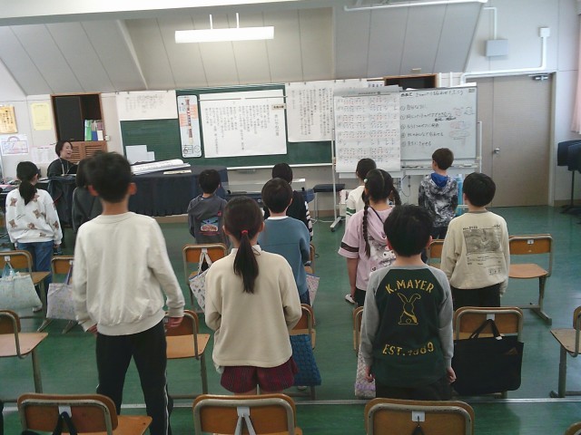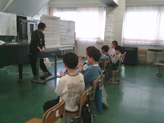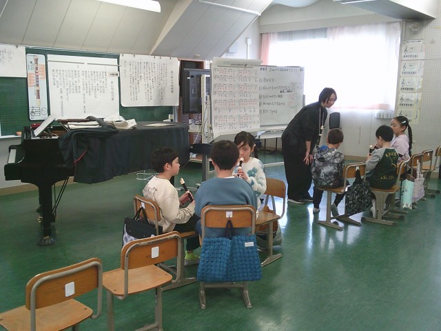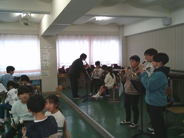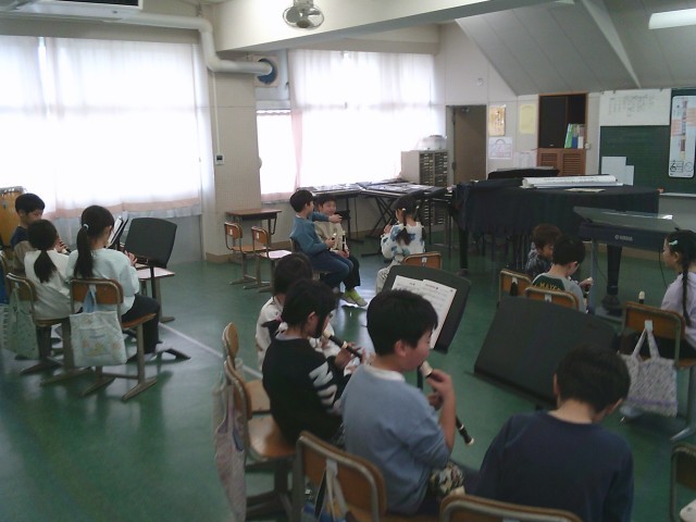 13日(金)3時間目、3年2組は音楽の時間でした。発声練習をしてから今月の歌「赤い屋根の家」を立って歌いました。次に、リコーダーを出して「ゆかいなまきば」の練習をしました。グループの場所に移動してから、上パートと下パートとに分かれて練習をしました。グループ内で聞き合うことができました。