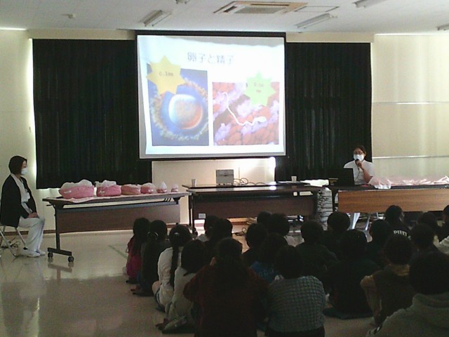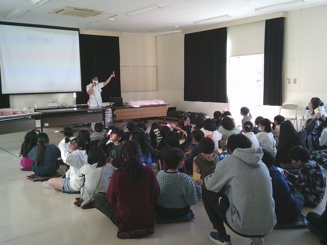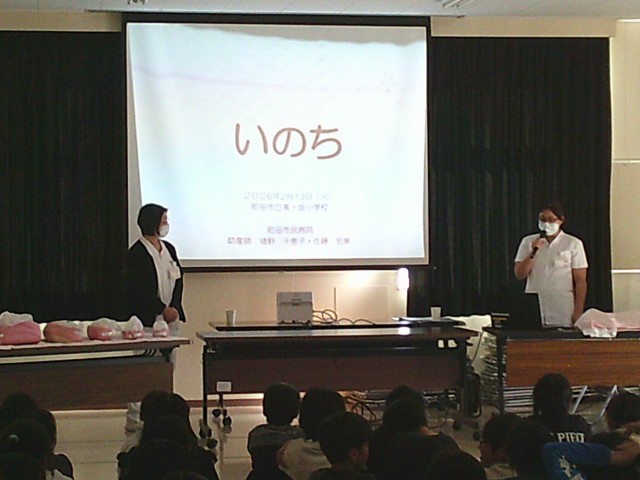 13日(金)5・6時間目、4年生は総合的な学習の時間でした。「10歳を祝おう」の取組の一環として「いのちの授業」に参加しました。講師に町田市民病院産婦人科の助産師さん2名をお招きして、「いのち」についてお話をしていただきました。命のもとである卵子と精子の大きさから、お母さんのお腹で少しずつ大きくなりやがて出産に至るまでの時間の流れを分かりやすく教えていただきました。