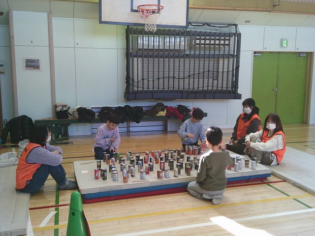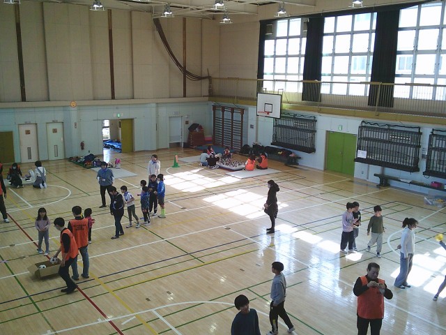 14日(土)午前10時から体育館において「ギネスに挑戦」と題したイベントが開催されました。この催しは、「町田市青少年健全育成町田東地区委員会」の皆さまが開いてくださいました。「輪投げ」「ミニボーリング」「缶つり」「ビー玉ひろい」「キックターゲット」の5つの遊びがあり、参加した子どもたちはそれぞれに楽しんでいました。