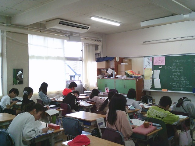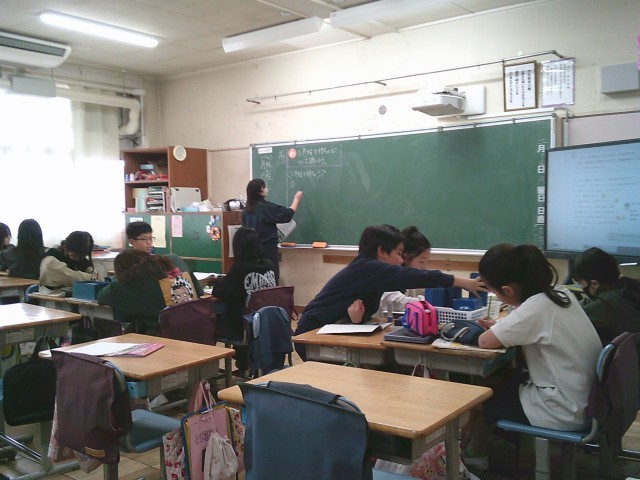 16日(月)5時間目、5年生は算数の時間でした。「立体」の学習です。今回は、角柱の中の三角柱について頂点や辺の数、面の形や面の数を調べました。
