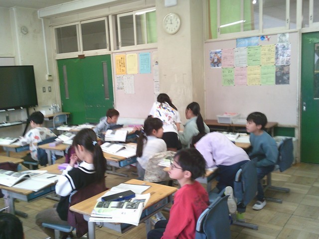 17日(火)4時間目、3年2組は社会の時間でした。「町田市の移り変わり」の学習です。今回は、「町田市の同じ場所の昔と今とを比べよう」をめあてに取り組みました。子どもたちは写真を見比べながら、気付いたことを発表していました。