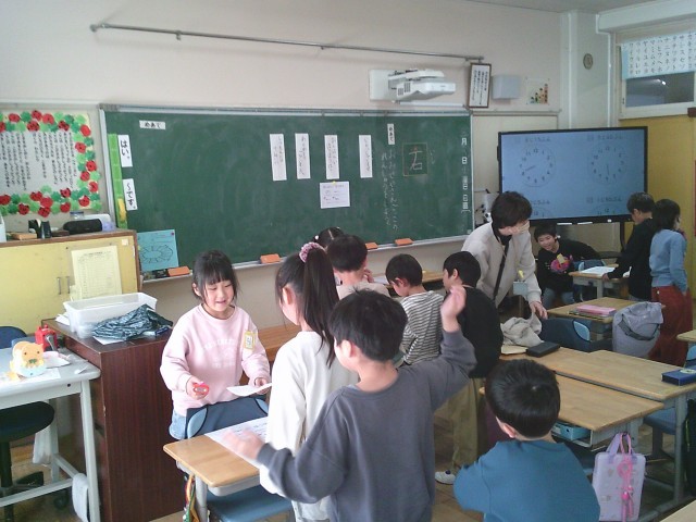 18日(水)4時間目、1年1組は国語の時間でした。「ものの名まえ」の学習です。これまで学んだ語句を使いながらお店屋さんごっこの練習をしました。先生の話を聞いてからお店屋さんとお客さんに分かれてグループ内で練習をしました。子どもたちは「いらっしゃいませ」「何がいいですか」「お支払い方法は何ですか」「ありがとうございました」「またお越しください」など向かい合ってやり取りをしました。支払い方法には○○ペイ等が選べるようになっています。