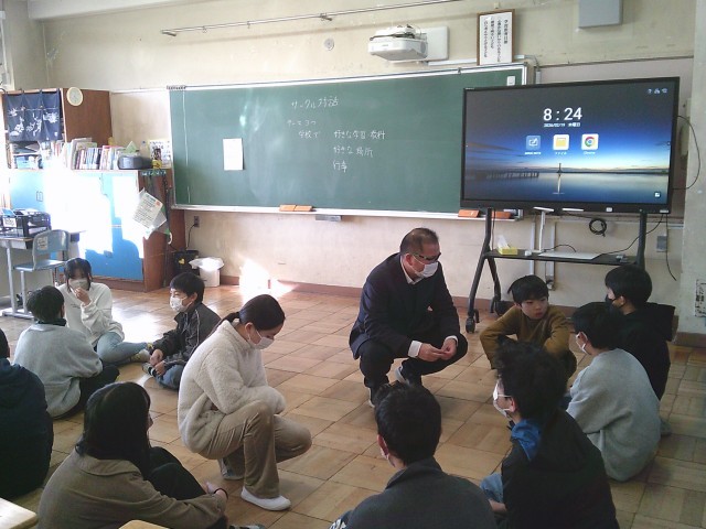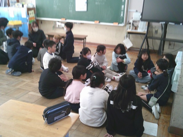サークル対話 その2 (2/19) 公開日 2026/02/19 更新日 2026/02/19 学校全体 19日(木)の朝、全学級でサークル対話に取り組みました。本校では毎月1回、第三木曜日に実施しています。サークルを作って話すのは、お互いの顔や表情が分かるためです。頷いて聞いてもらったり、笑顔で聞いてもらったりしたら、話した人は嬉しい気持ちになります。話すことも聞くことも大事にしています。めざす児童像「はあと」の「は」は「話す・聞く」ことです。写真は4年生から6年生までの様子です。 +7 学校全体