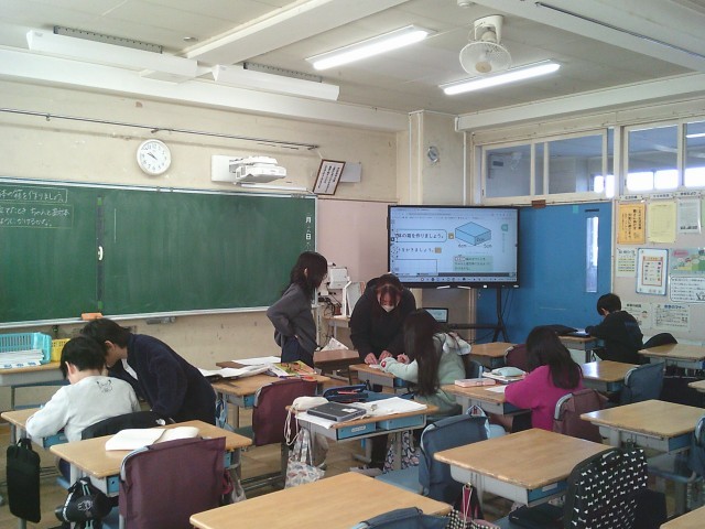 19日(木)2時間目、4年生は算数の時間でした。「直方体と立方体」の学習です。今回は、組み立てたとき直方体になるように展開図をかきました。子どもたちはマス目に気を付けながら定規で線を引いて、6つの面をかきました。その後、はさみで周囲を切って直方体になるかどうかを確かめました。「できた」と喜ぶ姿がどの学級でもありました。