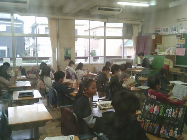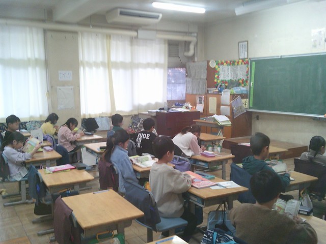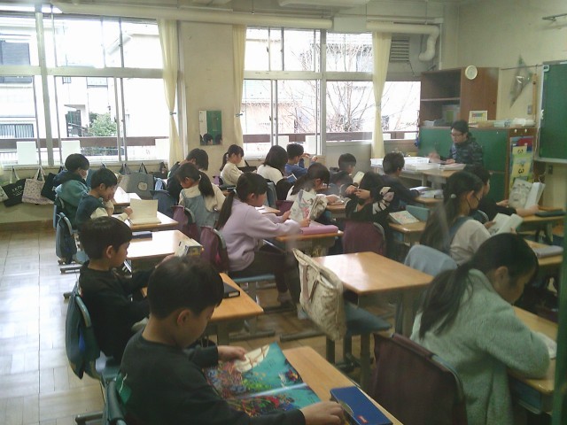 金曜日の朝は、1年生から3年生まで読書をして過ごします。写真は20日(金)の1年生と3年生の様子です。