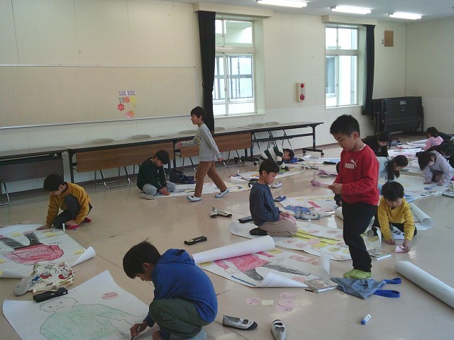 20日(金)2時間目、2年2組は生活の時間でした。「こんなにせいちょうしたね」の学習です。先週に引き続き、等身大の自分の絵に色をつけたり、友達が書いてくれた自分のいいところを糊付けしたりしました。