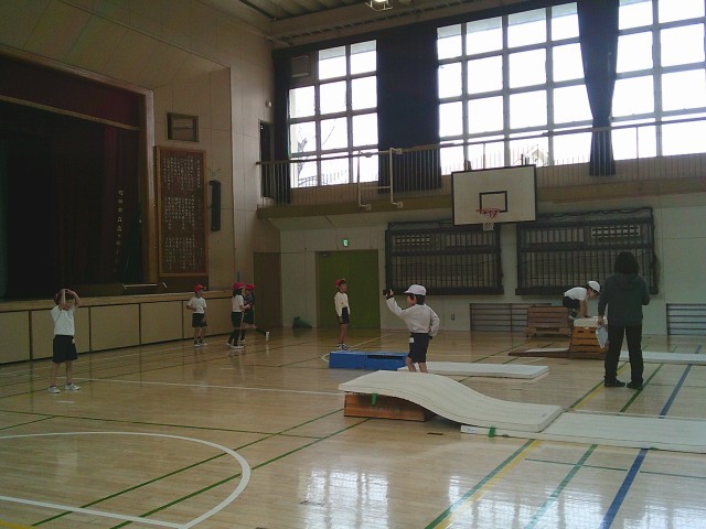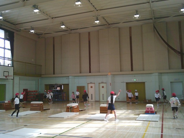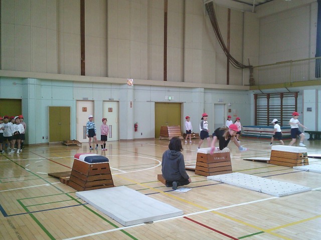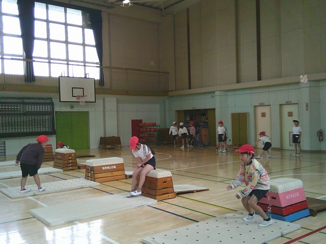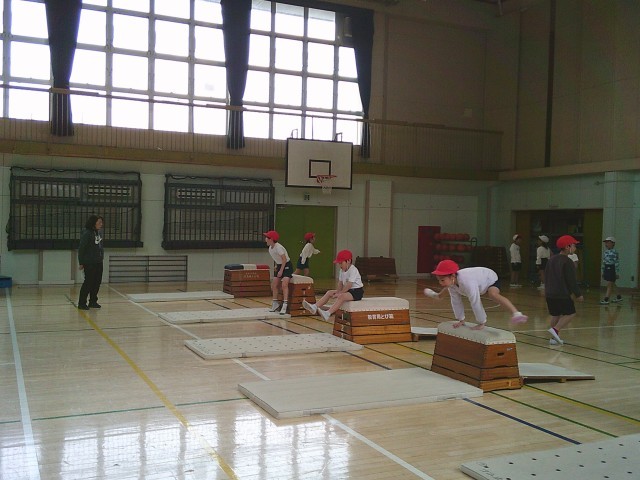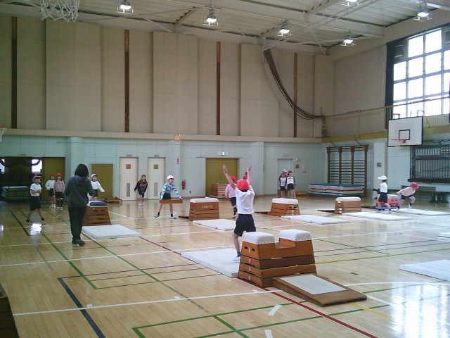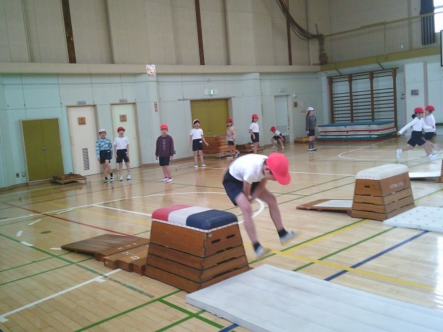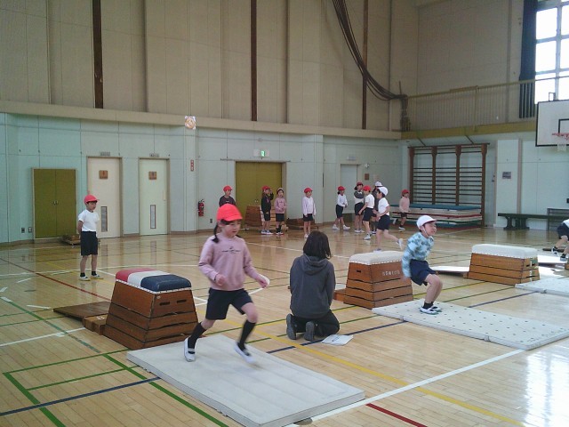 20日(金)2時間目、2年1組は体育の時間でした。跳び箱運動遊びに取り組んでいます。今回は、「いろいろな跳び方を楽しもう」をめあてに、跳び箱を縦長に置いた開脚跳びや、横長にした開脚跳びなどにチャレンジしていました。