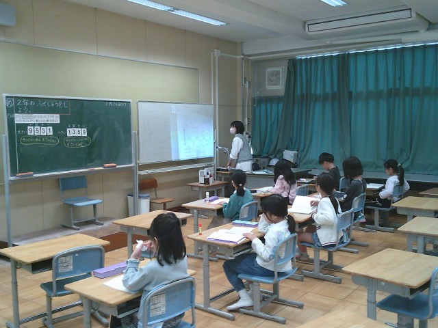 24日(火)4時間目、2年生は算数の時間でした。「2年のまとめ」が始まりました。今回は、4つの数字を並べ替えてできる一番大きい数と一番小さい数を考えたり、2けたのたし算やひき算の計算練習をしたりしました。