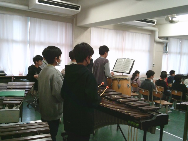 25日(水)3時間目、6年生は音楽の時間でした。今回は学年合同とし「Sing Sing Sing」の合奏練習をしました。6年生はほぼ楽譜を暗譜して練習に臨んでいました。最後の1回は楽譜無しで通しましたが、ジャズのスイングする感じが出ていて、自信をもってよいと思いました。