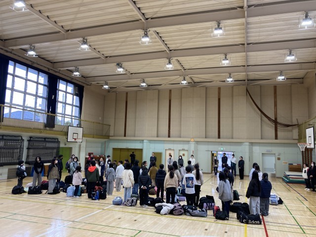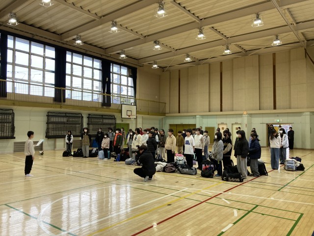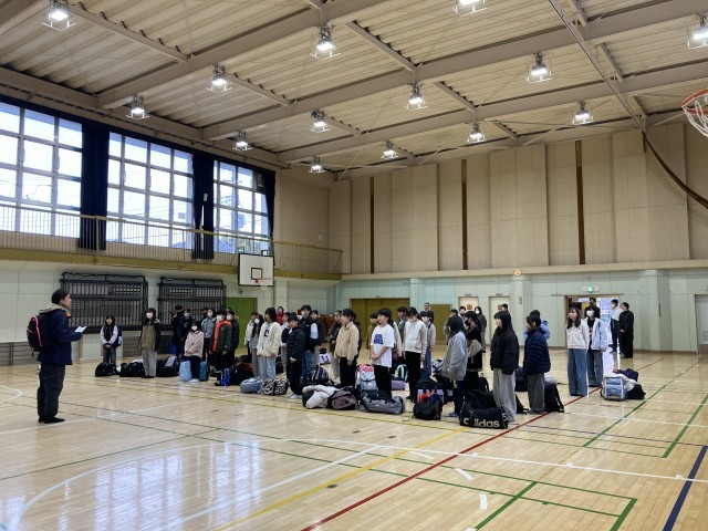 26日(木)午前7時40分、体育館に5年生が集合しました。出発式を行い、先生方や登校して来た子どもたちに見送られてバス乗り場へ向かいました。