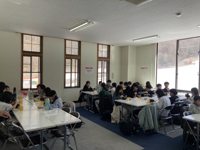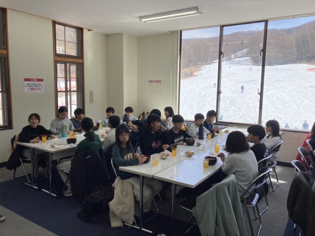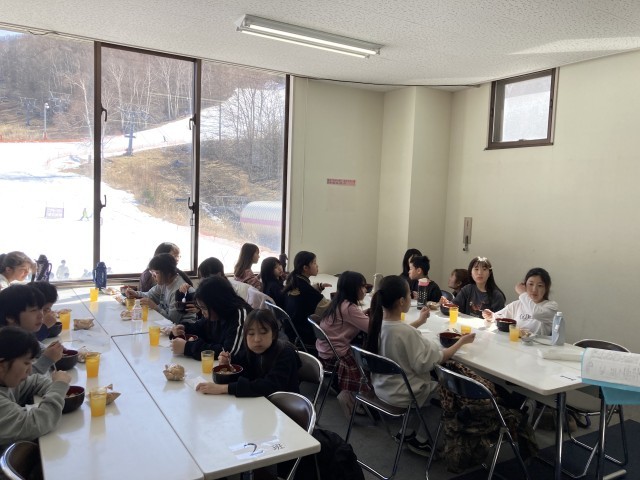 子どもたちは借りたウェア等を返却してから、お昼ご飯を食べました。豚丼をお代わりする人もいました。
