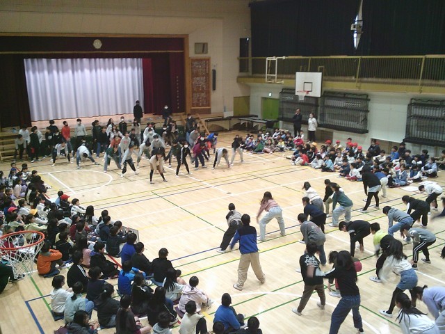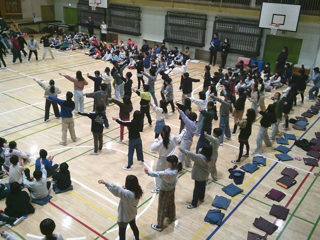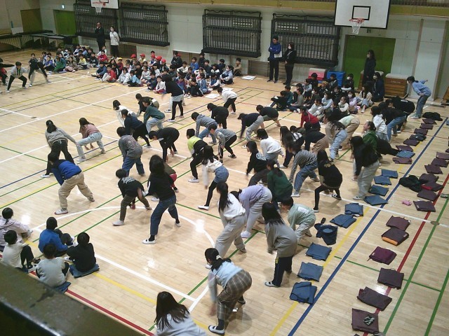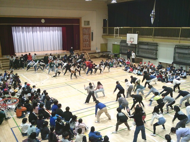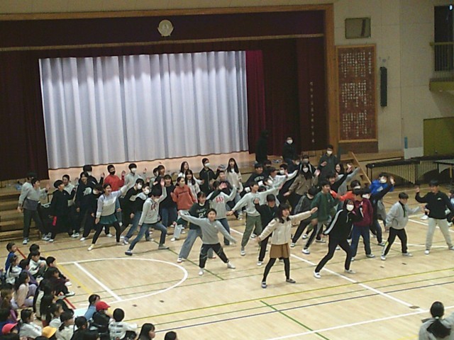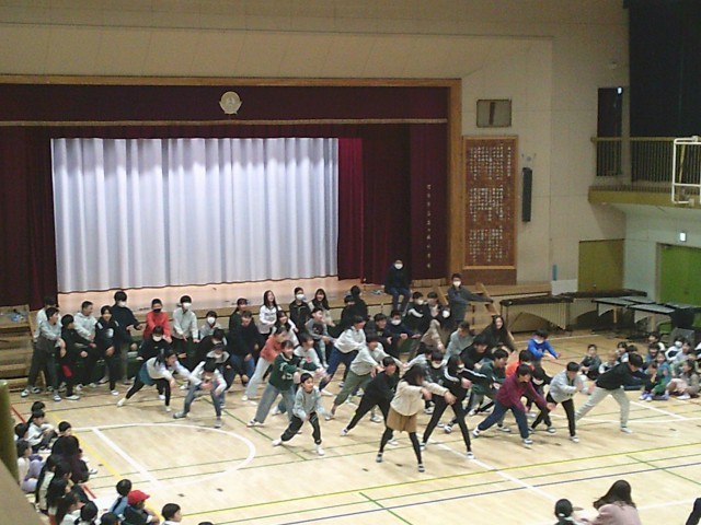 3日(火)、6年生への贈り物、最後は5年生です。「運動会で一緒に踊った『ソーラン節』を思い出して、もう一度踊ってください」のお願いに6年生が見事に応えました。踊りの一部を忘れてもそこは笑顔でカバーしていました。