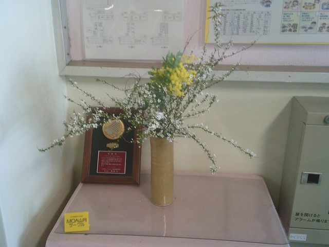 5日(木)、職員用玄関の生け花が新しくなりました。ユキヤナギとミモザです。いつもすてきなお花をありがとうございます。