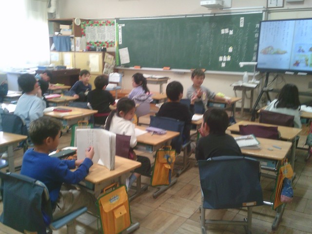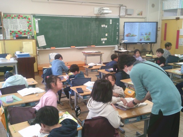5日(木)5時間目、1年1組は国語の時間でした。「ずうっと ずっと 大すきだよ」のお話を読み進めています。今回は、「エルフ」の気持ちがどのように変わっていったのかを考えました。子どもたちは「○○な気持ち」として表現しました。