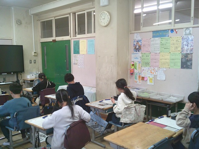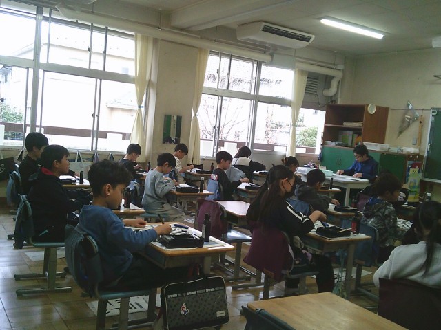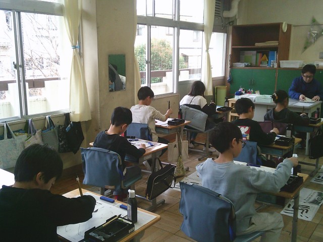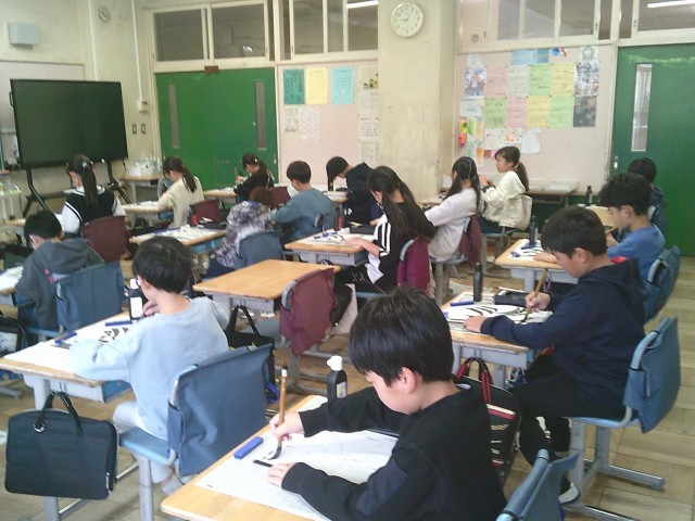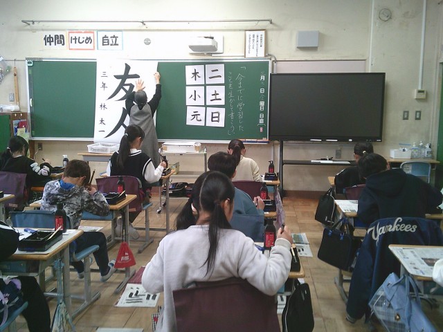 6日(金)1・2時間目、3年2組は書写の時間でした。「今までに学習したことを生かして書こう」が今回のめあてです。子どもたちは最初に筆使いの練習をしました。その後、半紙に「友人」と書きました。
