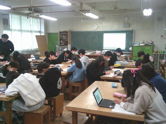 6日(金)2時間目、6年2組は図画工作の時間でした。「希望の鳥」の絵を木炭か色鉛筆で仕上げました。終わった人は「手」のスケッチをしていました。1時間だけの学習でしたが、集中して取り組んでいました。