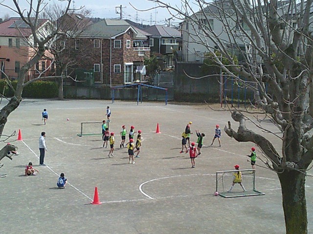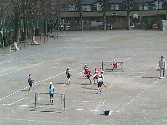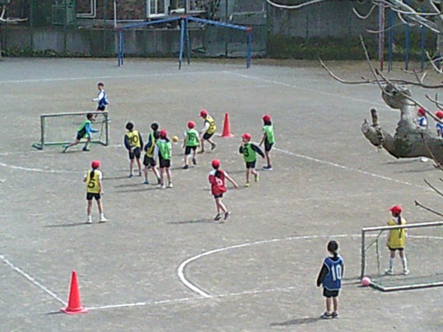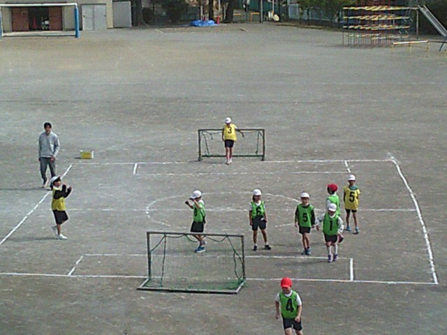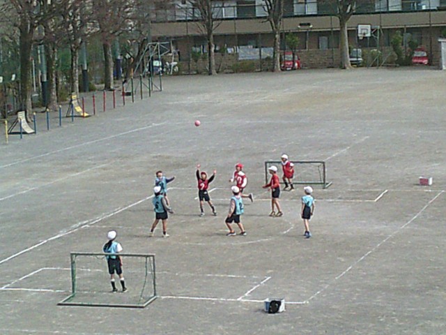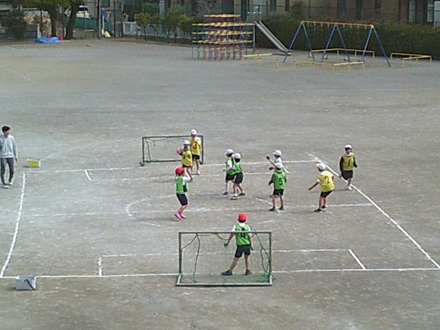 9日(月)3時間目、3年生は2学級とも体育の時間でした。校庭で「ハンドボール」のゲームをしました。1組は2つのコートを使って、2組は1つのコートを使ってそれぞれゲームを楽しんでいました。