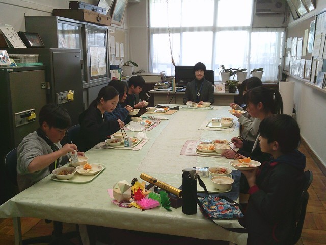 9日(月)、6年生との会食の様子です。子どもたちの小学校での思い出を聞いていると「新型コロナウイルス」の影響が大きかったことが分かります。それでもここまで成長してきたことを嬉しく思います。校長室ではお代わりもできます。食事の途中、栄養教諭が食缶を持って来てくれます。