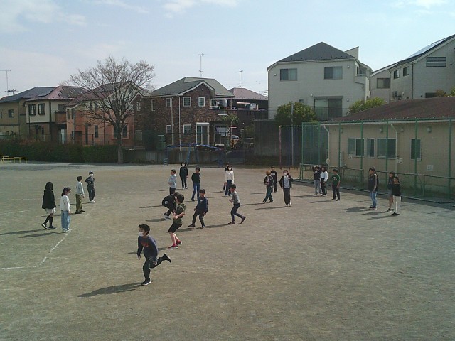 18日(水)2時間目、4年2組は校庭でお楽しみ会をしました。「王様ドッジ」に取り組んでいました。誰が王様なのか、子どもたちは表情に出さずに楽しんでいました。