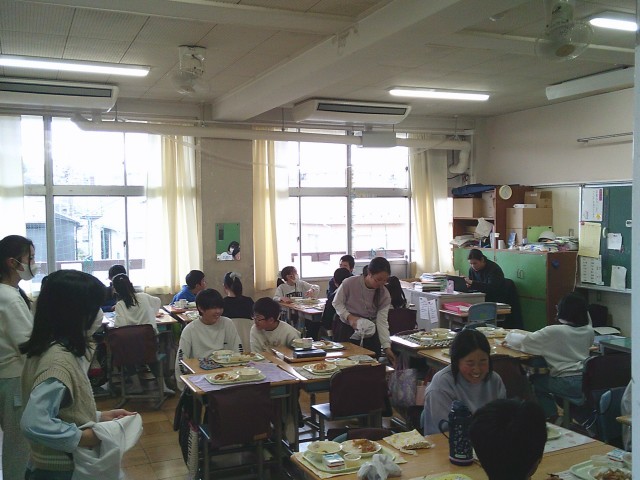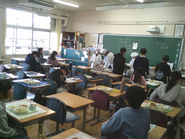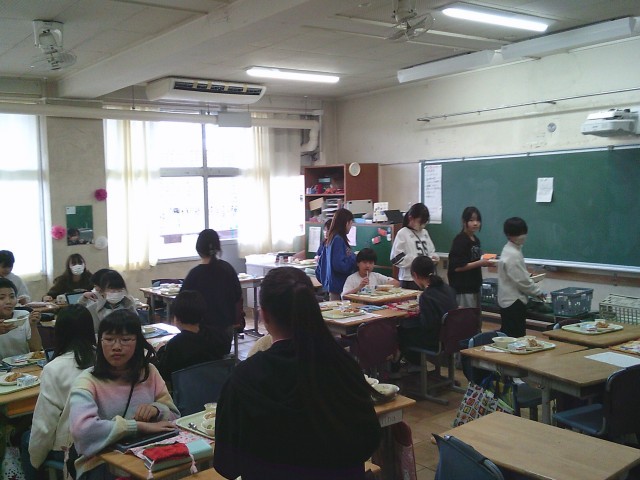 19日(木)、各教室での給食配膳の様子です。写真は4年1組から6年2組までです。カレーの香りが教室や廊下にも広がり、子どもたちは楽しみにしていました。