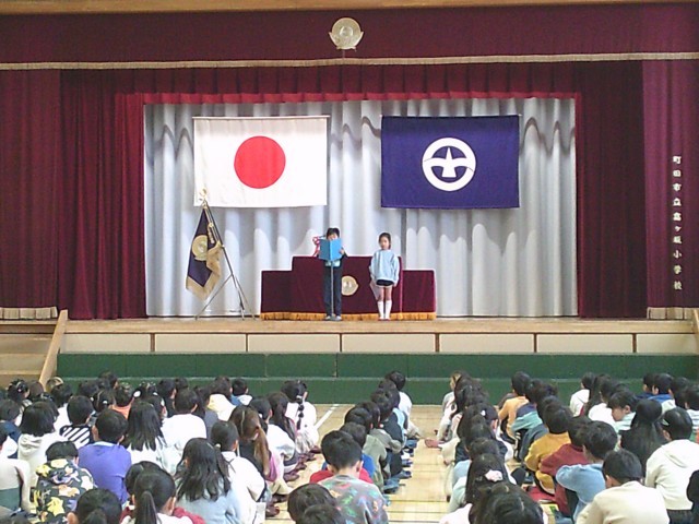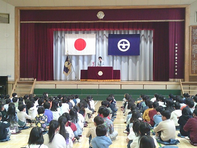 25日(水)修了式の様子です。校長先生の話は、「修了」の意味と絵本を活用した「学ぶ意味」についてでした。児童代表の言葉は2年生が担当しました。この一年間でできるようになったことをしっかりと述べることができました。校歌を全員で歌って修了式は終わりました。第二部として、明日から始まる春休みについて生活指導の先生が話をしました。