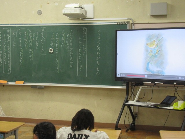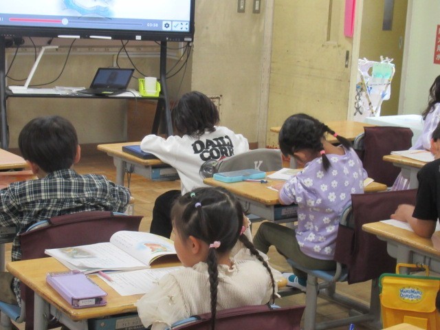 くまさんが自分の宝物を捨ててまで、友達を助けるというお話をもとに、人に対する親切・思いやりについて考えていました。自分の意見をワークシートに書き、友達と意見を交換していました。こうした授業の積み重ねや、授業で考えたことを生活の中で生かしながら子どもたちの心は育っていきます。