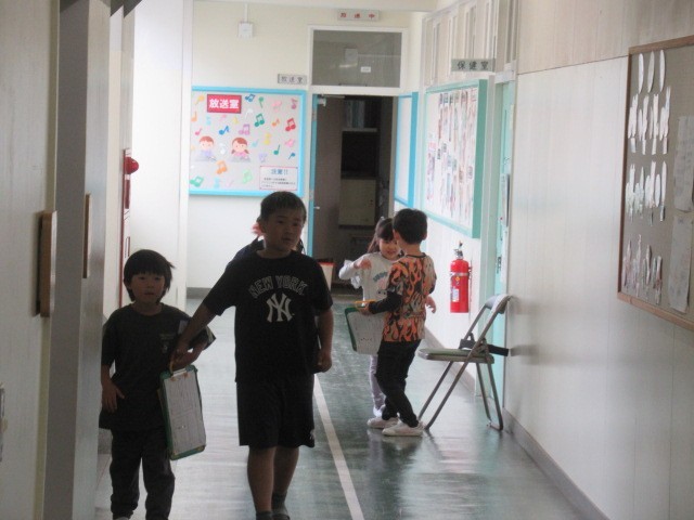 学校探検が始まりました。2年生が優しく1年生をリードしながら学校を回っています。楽しみながらも周りに迷惑をかけないように静かにする場面などもあり、とても微笑ましい光景でした。1年生もすっかり学校に慣れてきました。そして、案内役の2年生も頼もしかったです。