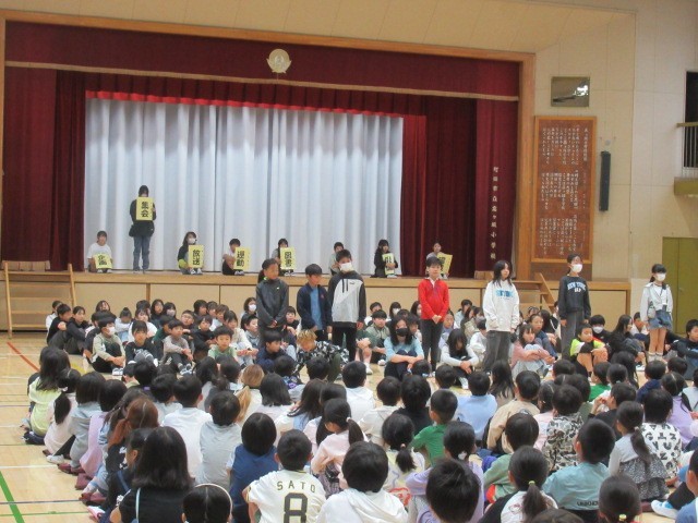 各委員会の5・6年生が下級生の方をしっかりと向き、委員会活動の内容と今年度の意気込みを語りました。下級生にとっては学校生活の中でみんなのために仕事をしている上級生の存在を知る貴重な機会です。そして上級生にとっては、人の役に立とうとする自分たちの気持ちを高める機会となりました。頑張っていきましょう。