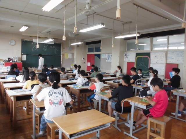 10日(火)1・2時間目、5年1組は家庭科の時間でした。講師の先生と「できるよ 家庭の仕事」の学習からスタートです。夏休みに家で取り組んだお手伝いについて、まとめました。