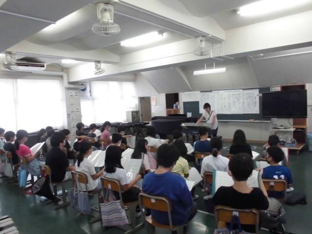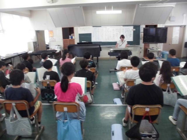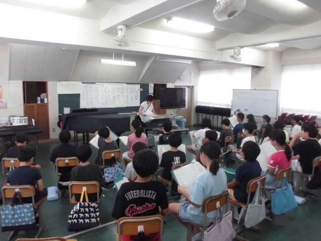 11日(水)1時間目、5年2組は音楽の時間でした。今月の歌を歌ってから、「With You Smile」という歌の練習をしました。この歌は、11月に行われる連合音楽会で披露する曲です。最終的には二部合唱で歌いますが、少しの間は主旋律を全員で練習します。