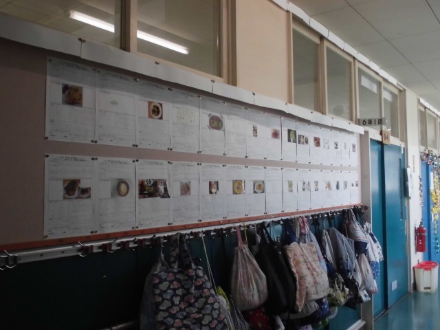 6年生の廊下には、夏休みに取り組んだ「朝食のレシピ」が登場しました。忙しい朝でも手軽に作ることができるレシピばかりです。