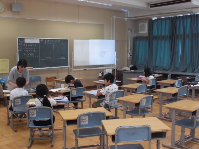 13日(金)1時間目、2年生は算数の時間でした。「三角形と四角形」の学習が始まりました。今回は、形を調べて仲間分けをしました。