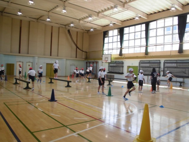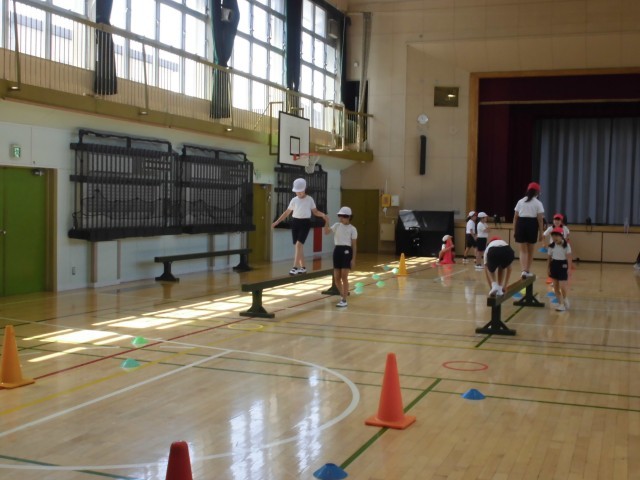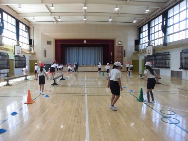 13日(金)3時間目、4年2組は体育の時間でした。「多様な動きをつくる運動」に取り組んでいます。今回は、グループごとに、体のバランスをとる動きを取り入れたコースを考えて練習をしました。