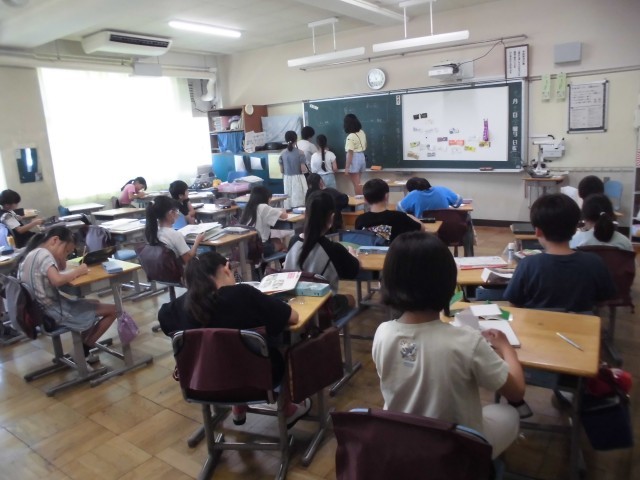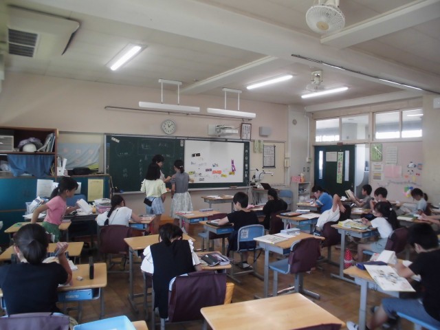 13日(金)3時間目、4年1組は国語の時間でした。「本のポップや帯をつくろう」の学習です。読んだ本の良さを紹介するために、見出しやあらすじを取り入れながらポップや帯作りをしました。