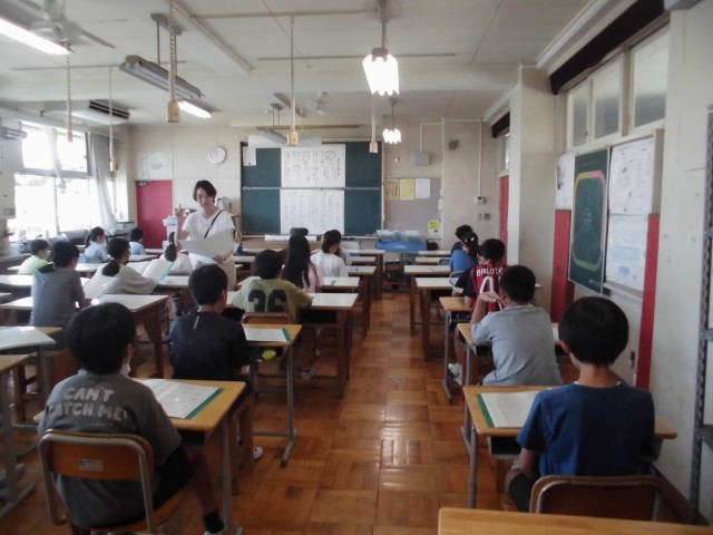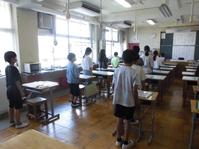 13日(金)4時間目、5年1組は音楽の時間でした。昨日から音楽室の空調施設が動かなくなり、本日からしばらくの間、家庭科室や視聴覚室で授業をすることにしました。今月の歌「夏の日の贈り物」や、「With you smile」の練習をしました。普段とは違う環境ですが、子どもたちは落ち着いて臨んでいました。