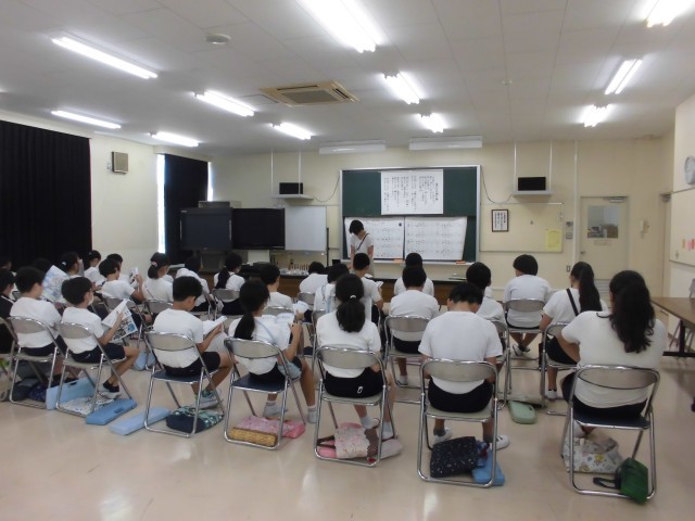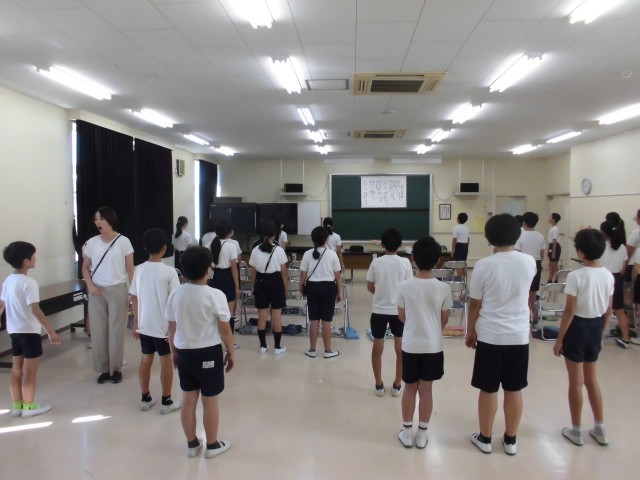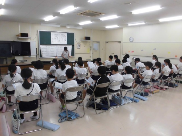 13日(金)5時間目、6年1組は音楽の時間でした。音楽室の空調施設が使えなくなり、今回は、視聴覚室で授業を行いました。今月の歌を歌ってから、「星の世界」を初めて聞きました。主旋律を歌うことができるように練習しました。空調施設については、教育委員会と連絡を取っています。