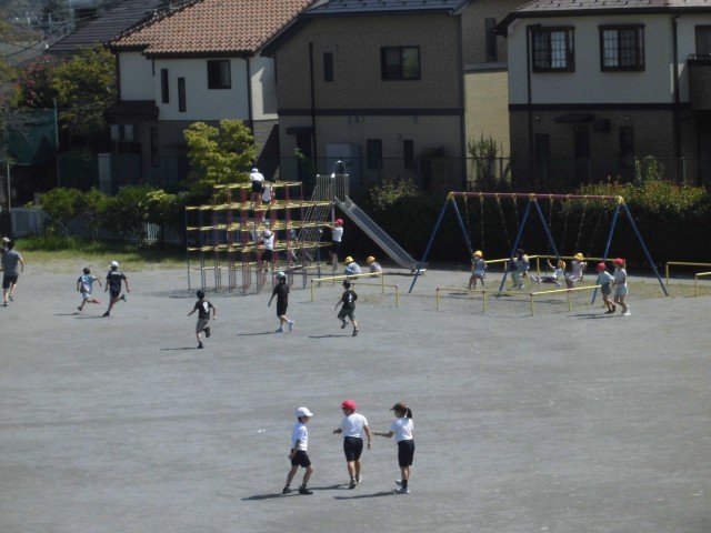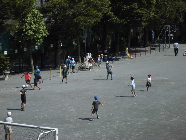 17日(火)中休みの様子です。先週は熱中症の心配から外遊びを見合わせてきましたが、今回は遊ぶことができました。担任の先生と一緒に鬼ごっこをしたり、ボール遊びをしたりする姿もありました。