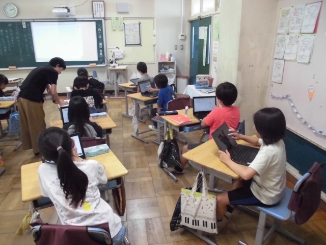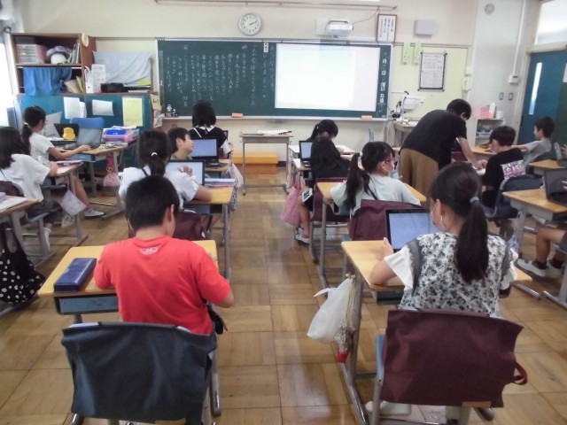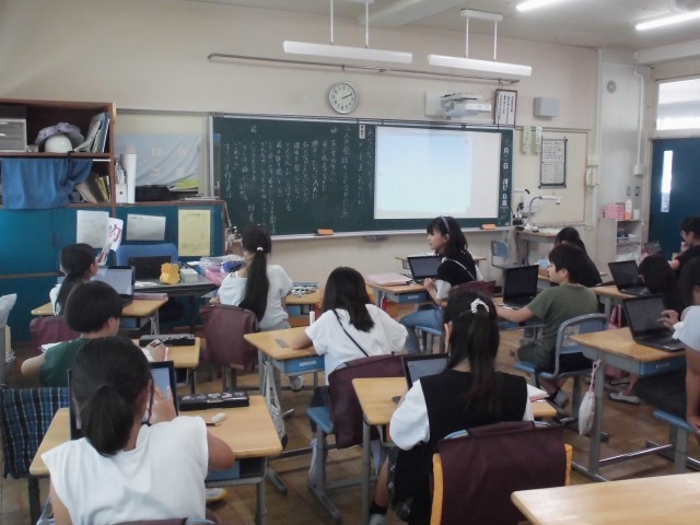 17日(火)5時間目、4年1組は国語の時間でした。「あなたなら どう言う」の学習です。姉と弟の二人のやり取りを見て、姉の立場なら弟にどのように言うかを考えました。きつい言い方になったり、見下すような言い方になったりしないために、どのように伝えるか、自分の考えをタブレット端末に入力して共有しました。