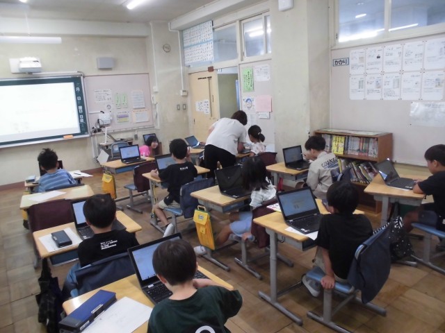 18日(水)2時間目、2年2組は生活科の時間でした。タブレット端末を使って、スライド作成に取り組みました。ICT指導員の方にお越しいただき、担任の先生とともに、「虫ずかん作り」をしました。