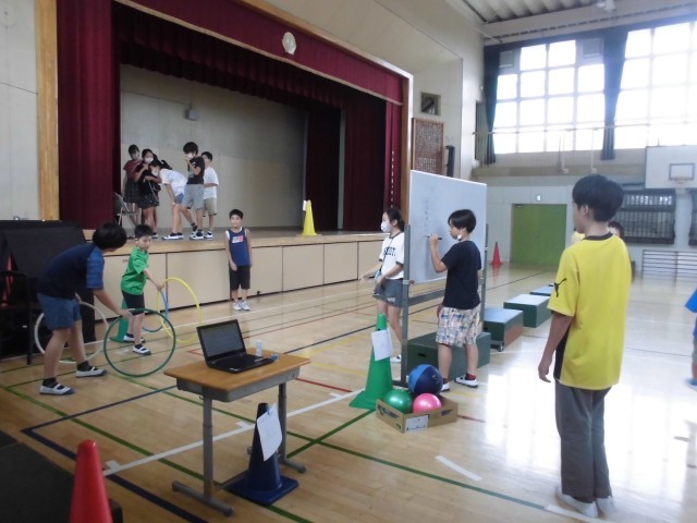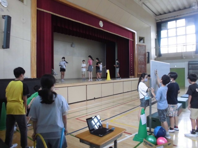 19日(木)1時間目、6年1組は「こどもまつり」の準備をしました。10月1日の本番では、体育館のすべてを6年1組が使用します。実際に用具を配置して、自分たちでリハーサルをしました。