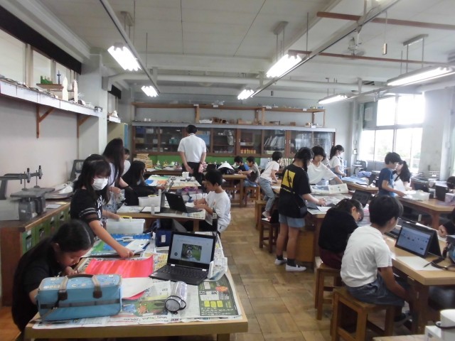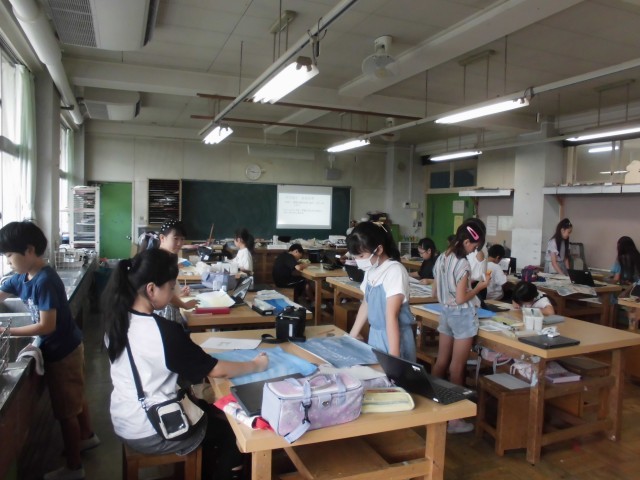 19日(木)1・2時間目、4年2組は図画工作の時間でした。「重ねてかこう」と題した絵を描きました。最初に、画用紙に絵の具の重ね塗りをしました。次に、タブレット端末で動物を調べ、気に入った動物の絵を書き加えました。