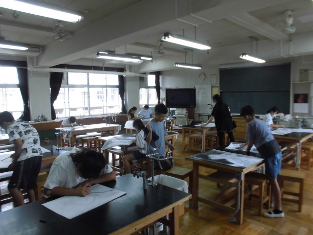 24日(火)5・6時間目、6年1組は図画工作の時間でした。龍の絵を大きな紙に描く最終回でした。図工室と理科室とに分かれて仕上げにかかりました。